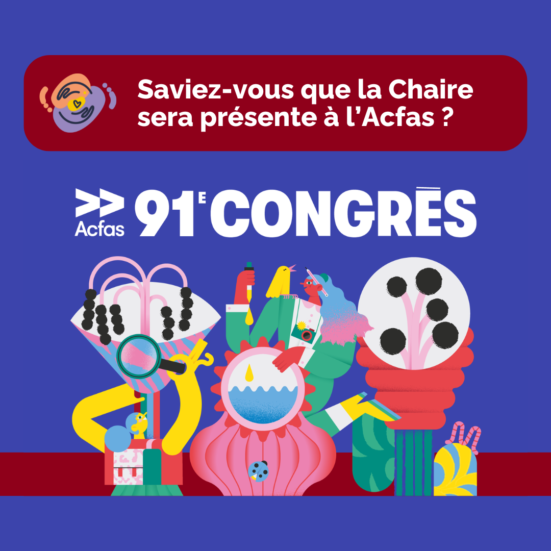 La Chaire sera présente à l’occasion du 91e congrès de l’ACFAS qui aura lieu du 13 au 17 mai 2024 à l’Université d’Ottawa